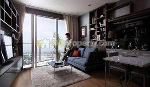 Sky Walk Condominium on main Sukhumvit road 69/1, 150 meters walk to BTS Phrakhanong, One big Bed room Type C 52 sq.m.,Floor 14 Glass wall bedroom with City view Balcony, Facing Thonglor, No Blocked view. Fully furnished, Bedroom, Dining room, Living room with Sofa Daybed, TV, Separated Built-in Kitchen, Refrigerator, Microwave,Washing machine, Glass wall bathroom with bathtub.