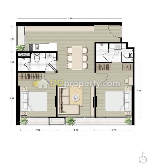ขายดาวน์คอนโด Noble Recole โนเบิล รีโคล สุขุมวิท 19 2 ห้องนอน 2 ห้องน้ำ ขนาด 68