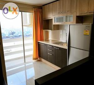 พื้นที่ขนาด 34 ตรม. เฟอร์นิเจอร์บิวอิน มีครื่องทำน้ำอุน ไมโครเวฟ เครื่องซักผ้า ตู้เย็น