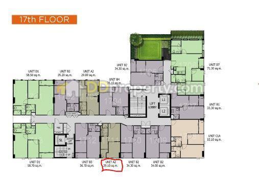 ขายดาวน์ Condo The Gallery Bearing ชั้น 9 เป็นแบบ B2