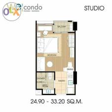 ห้อง Studio 25.87 ตารางเมตร ชั้น 2 (Low rise 8 ชั้น) พร้อมเฟอร์นิเจอร์ fully furnished