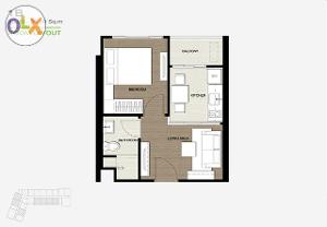ห้องเป็นแบบ 1 ห้องนอน 1 ห้องน้ำ (ทางโครงการมี แอร์ให้ 2 เครื่อง, ที่ดูดควัน, เตาไฟฟ้า, อ่างล้างจาน)