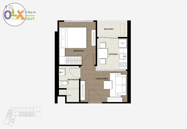 ห้อง 013810 (ชั้น 38 จากทั้งหมด 39 ชั้น) พื้นที่ 28.5 ตารางเมตร