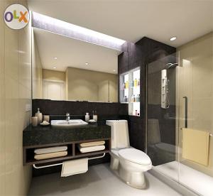 3.สุขภัณฑ์ห้องน้ำพร้อมฉากกั้นอาบน้ำกระจกนิรภัย Tempered Glass