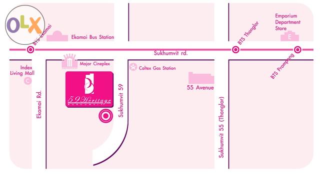 เฮอร์ริเทจ สุขุมวิท 59 คอนโด บน ถนนสุขุมวิท ซอย 59 ห่างจากสถานีรถไฟฟ้า BTS ทองหล่อ ประมาณ 300 เมตร สิ่งอำนวยความสะดวก มีสวนหย่อม, ระบบกันขโมย, สระว่ายน้ำ, Fitness มีระบบรักษาความปลอดภัยสำหรับการเข้าออกด้วย คีย์การ์ดพร้อมโทรทัศน์วงจรปิด