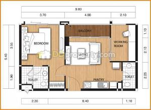 1bedroom,1study room, 2bathrooms. (54 sqm.)