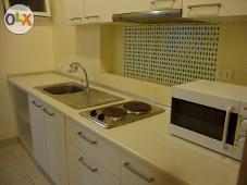 This room has 2 air conditioners (one in bedroom and another in living room) , a electronic stove and a cooker hood in the kitchen zone,