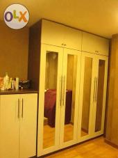 เตียงพร้อมที่นอนสปริง 6 ฟุต ตู้เสื้อผ้า โต๊ะเครื่องแป้งพร้อมเก้าอี้ ชั้นวาง TV