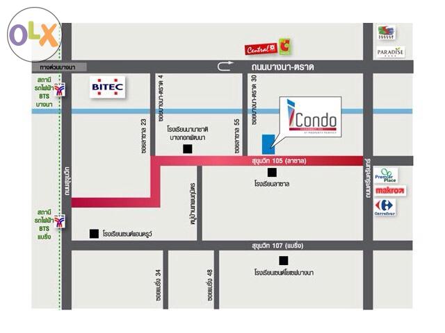 • ตั้งอยู่บนถนนใหญ่ซอยสุขุมวิท 105 (ลาซาล-แบริ่ง)