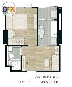 พื้นที่ห้อง 30.5 ตร.ม. มีจำนวน 2 ห้อง