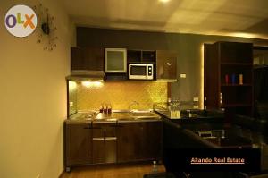 Fully furnished with air-conditioners, LCD TV, sofa, dining table. The bedroom include king size bed, wardrobe, dressing table set. The kitchen include cooking hood, electric stove, microwave, refrigerator. Facilities as swimming pool, fitness & steam room, lobby with Wi-Fi, underground parking space, security card access, 2 elevators, complete living service and around the clock security.