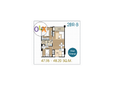 Building B - ห้องขนาด 48.18 ตรม. แบบห้อง 2 ห้องนอน และ 1 ห้องน้ำ พร้อมกับ Furnished ของ ModernForm อยู่ชั้น 6 อาคาร B(อยู่บริเวณกลางๆของอาคาร)