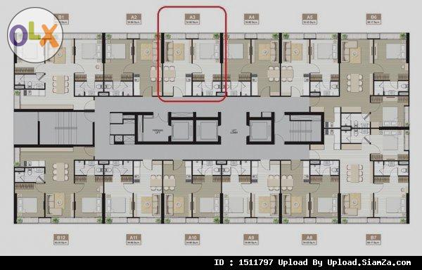 Unit A3 ชั้น 7 (7A3) 1BR ขนาด 34.86 sqm.