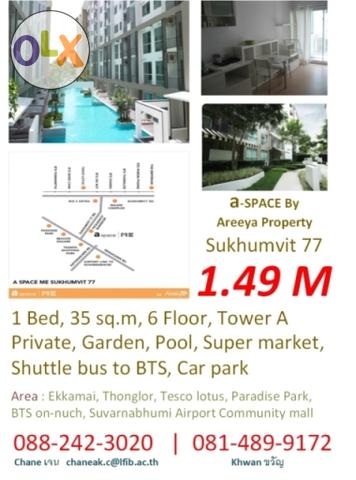 ขาย คอนโด a-space สุขุมวิท77 เฟอร์ครบพร้อมอยู่ เจ้าของขายเอง