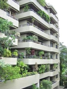 - ระเบียงขนาดใหญ่พร้อมต้นไม้และเครื่องรดน้ำอัตโนมัติ