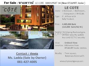 ขายคอนโด Le Cote สุขุมวิท 14 ใกล้ BTSและMRT พท. 28 ตร.ม. ห้องสตูดิโอ ราคา 3.76 ล้านบาท - คอนโด ขาย
