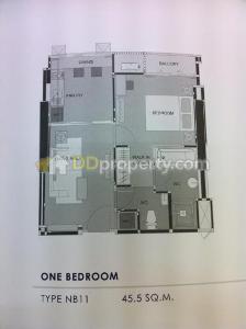 ชั้น 21 ห้อง NB11 เป็นห้องมุม ขนาด 45.5 ตร.ม. ตึก North วิวแม่น้ำ