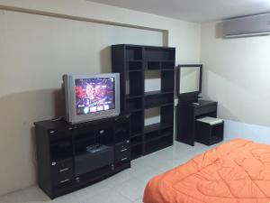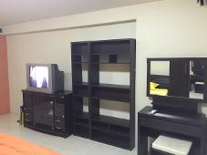 ห้องสตูดิโอ พร้อมเฟอร์นิเจอร์ โต๊ะ เตียง ตู้ โซฟา ชั้นวางของ ชั้นวางทีวี โต๊ะเครื่องแป้ง มี 1 ห้องน้ำ แยกโซนเปียกและแห้ง