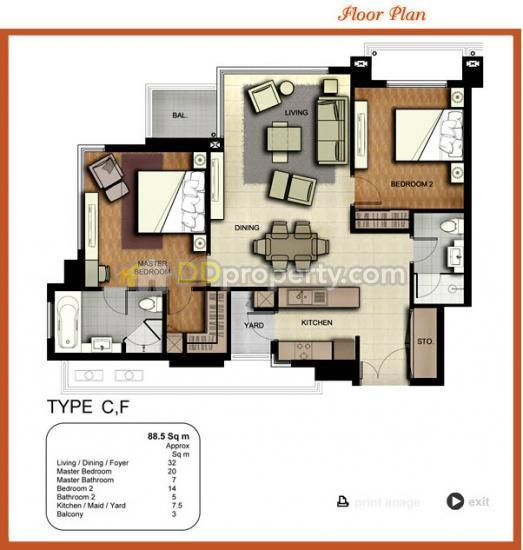 | ขนาดห้อง | 88.0 ตารางเมตร |