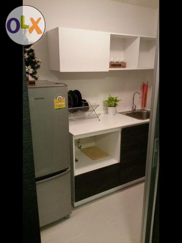 Sell dcondo Sukhumvit 109 Swimming Pool Floor 1 Size 30.19 sqm. The atmosphere is like a vacation. Furnished with bed, kitchen cabinets, built-in wall unit or into the bedroom and living room. 2 air conditioners, refrigerators, appliances, water heater. dvd player