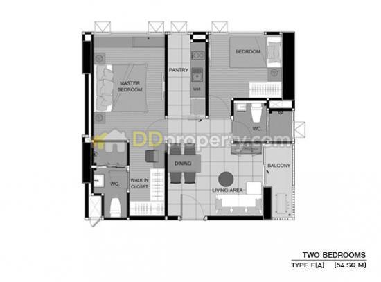 โครงการ AP Sukhumvit 48 แบบ 2 ห้องนอน ขนาด 54 ตารางเมตร ขายผ่อนดาว์นที่ 500,000 บาท