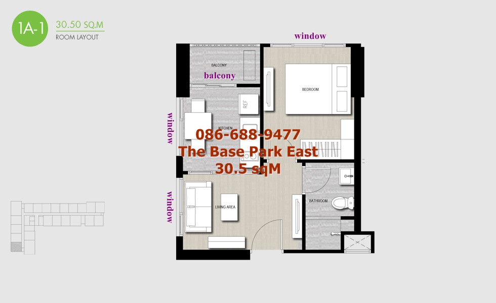 ห้องมุม THE BASE Park East - Sukhumvit 77 - 90000 บาท ติดต่อคุณ nakritsana Jira