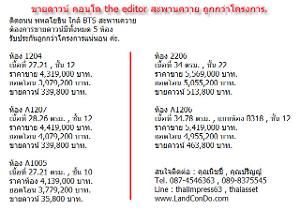 ขายคอนโดโครงการ The Editor Vertical Village สะพานควาย - 4319000 บาท ติดต่อคุณ คุณ คุณ