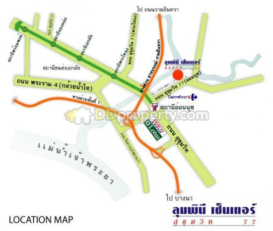 โครงการลุมพินี สุขุมวิท 77 ใกล้ Lotus, Big C, Picadaily Community Mall, ตลาดอ่อนนุช (ห่างรถไฟฟ้าอ่อนนุช ประมาณ 700 เมตร เดินมา BTS 15 นาที นั่งวินมอร์ไซค์ 15 บาท)