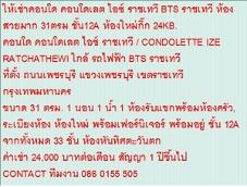 ให้เช่า คอนโดเลต ไอซ์ ราชเทวี 19500 บาท For rent Condolette Ize Ratchathewi 19500thb