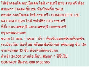 ปล่อยเช่า คอนโดเลต ไอซ์ ราชเทวี Condolette Ize Ratchathewi 31ตรม ชั้น20 160 ม. ถึง Bts ราชเทวี