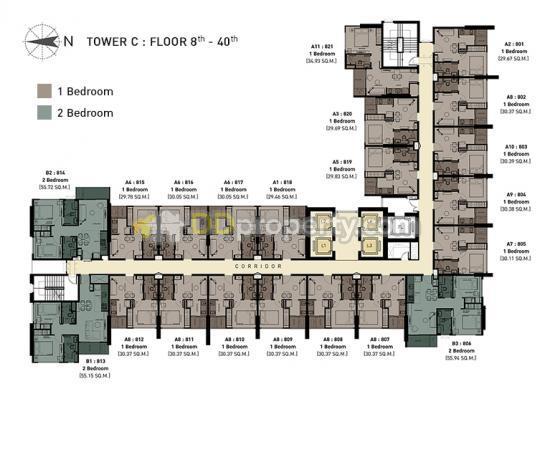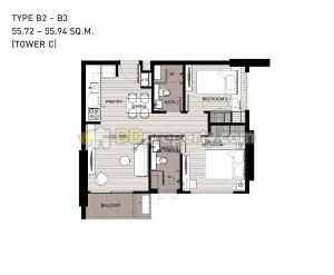 - ตึก C ชั้น 17 ห้อง 1714, 2 นอน 2 น้ำ ขนาด 55.72 ตรม