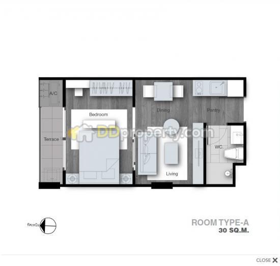 คอนโด Modiz ห้อง 625 (Type A) ชั้น 6 ทิศใต้ รับลม ขนาด 30 ตร.ม. เฟอร์+แต่งครบ