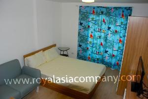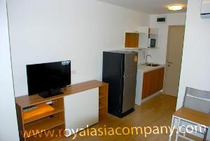 Elio is a resort style condominium complex located in a quiet street, 600m from Punnawithi BTS station. The complex consists of four buildings laid out in a courtyard style with a swimming pool, library, fitness center, gardens and a running track in the cenrtal area. This stuio unit comes fully furnished including fridge/freezer and microwave oven, TV, bed, seating, tables and beside units.