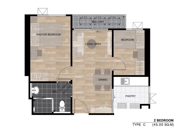 ** Room size 45sqm ** 2Bedroom & 1Restroom
