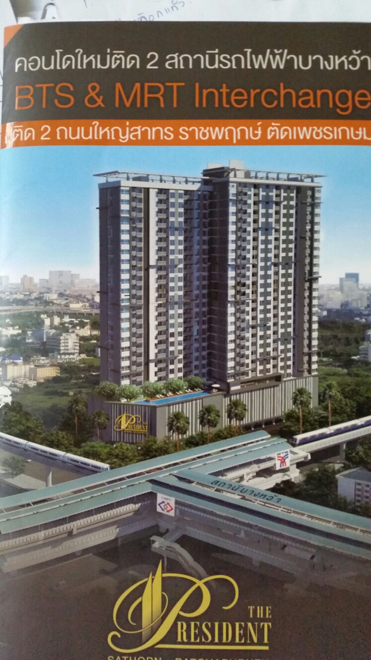 ขายคอนโดโครงการ The president sathorn-ratchaphurek1 ติด BTS+MRT - 2100000 บาท ติดต่อคุณ mam