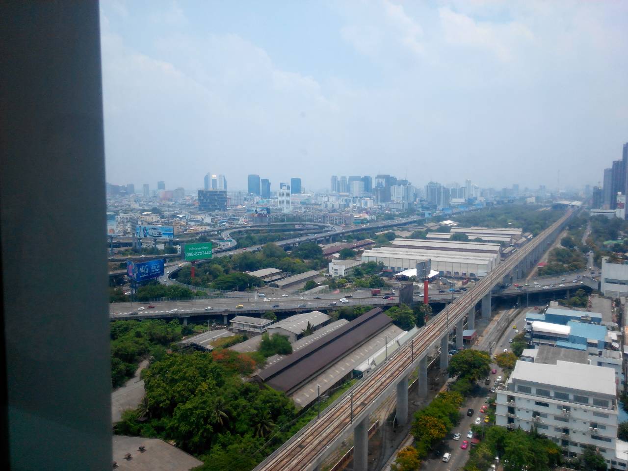 คอนโดสูง 34 ชั้น 1 อาคาร อายุทรัพย์สิน 2 ปี ระเบียงหันไปทางทิศตะวันออก วิวโล่งมองเห็นAir Port Link