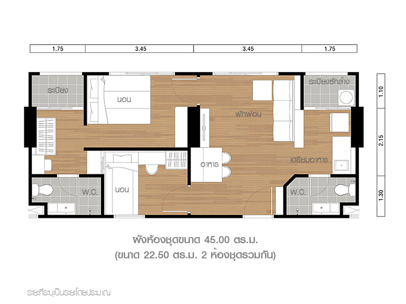 ขนาดพื้นที่ 45.0 ตารางเมตร