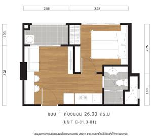 o ขนาด 26 ตร.ม แบบ 1 ห้องนอน
