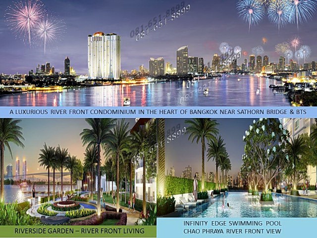 The Unique Architectural design with Modern oriental style of 42-story riverfront Condominium on 12-0-72 rais. with fully equipped facilities.