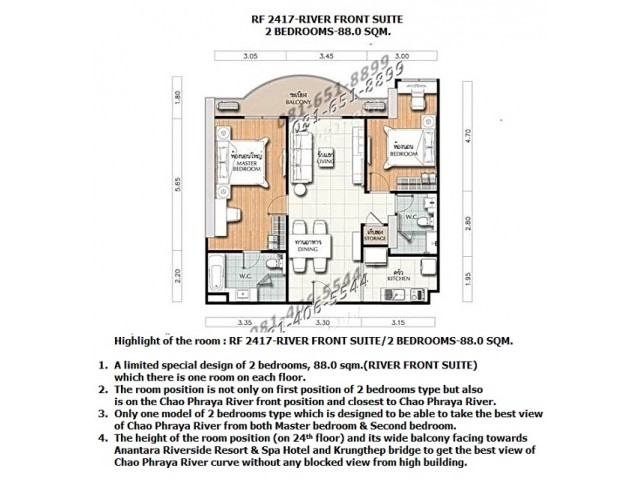 Highlight of the room : RF 2417-RIVER FRONT SUITE/2 BEDROOMS-88.0 SQM.