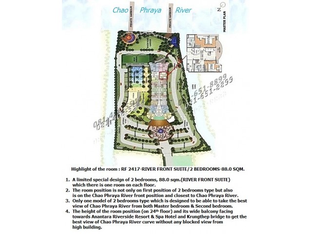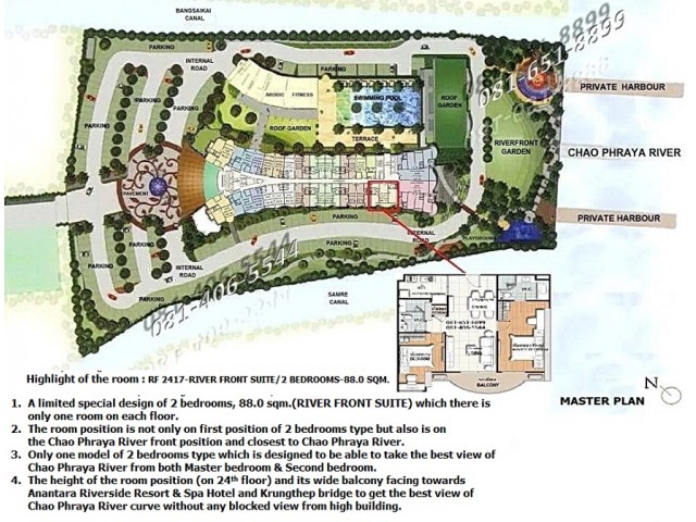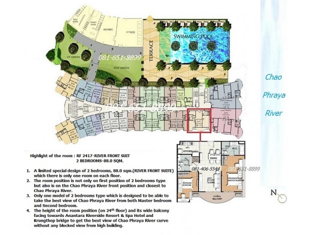 2. The room position is not only on first position of 2 bedrooms type but also is on the Chao Phraya River front position and closest to Chao Phraya River.