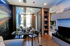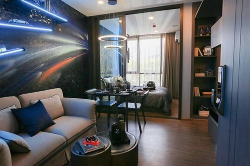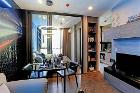 ห้องมุม ขนาด 40 ตร.ม. 1 ห้องนอน 1 ห้องน้ำ รหัสห้องชุด 1D โครงการจะเสร็จ 30 ธันวาคม 2559 เฟอร์นิเจอร์ครบชุดตามที่เห็นในรูป; เตียงขนาด 6 ฟุต, ชุดโซฟา, โต๊ะรับประทานอาหาร, เครื่องปรับอากาศ Daikin ฯลฯ