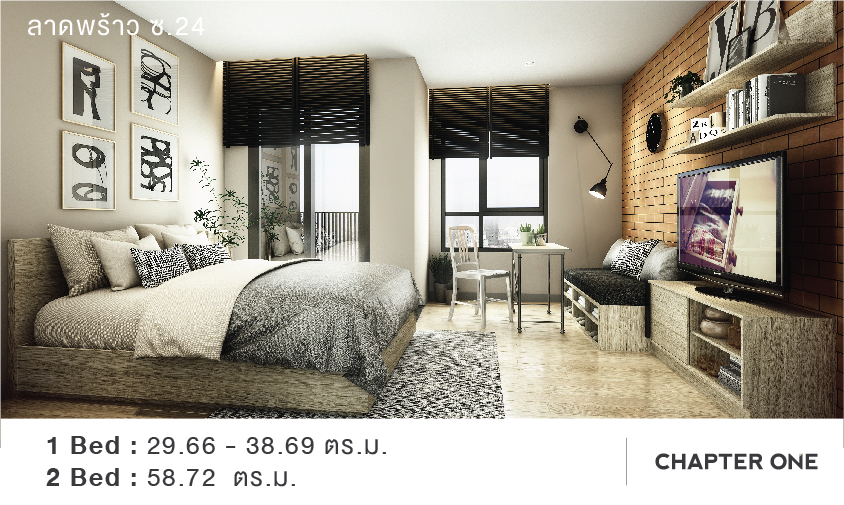 คอนโด Chapter One Midtown ลาดพร้าว 24 ถ.ลาดพร้าว แขวงจอมพล เขตจตุจักร กทม. เนื้อที่ 58.44 ตร.ม.