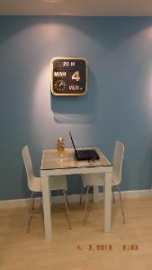 ห้องชุดนี้เพิ่ง Renovate ใหม่ทั้งห้อง พ่นสีเฟอร์นิเจอร์ใหม่ ทาสีกำแพงใหม่ ติดวอลเปเปอร์ ปูกระเบื้องระเบียงใหม่