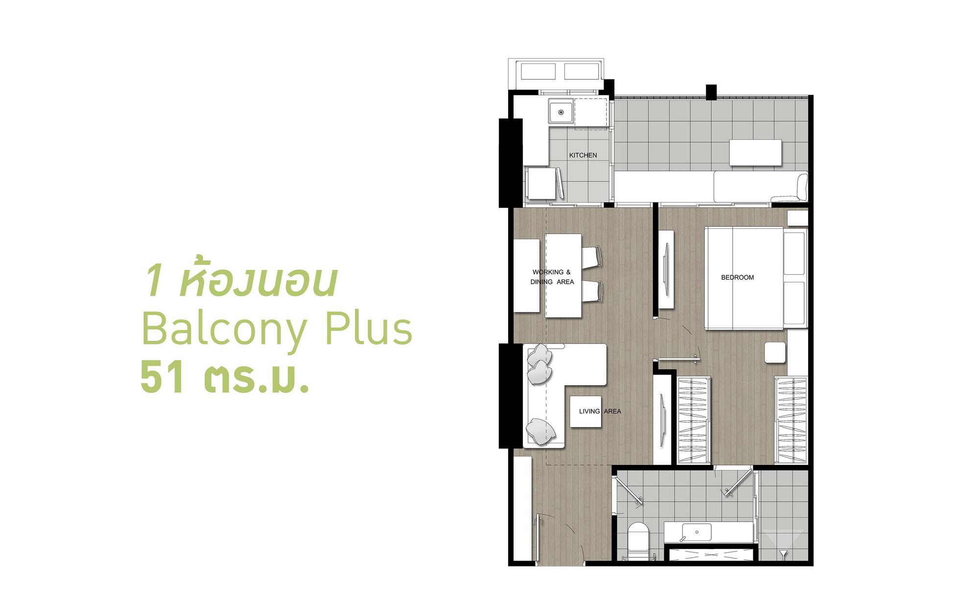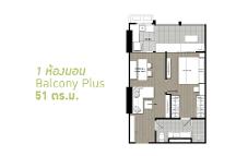 ขนาดพื้นที่ 51.0 ตารางเมตร