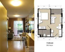 Elio Condo Sukhumvit 64 ห้องเฟอร์นิเจอร์ Size 22 sq m.