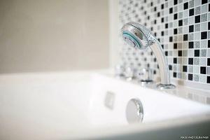 Toilet: Big space, full sanitary, bathtub, shower glass room with water heater.