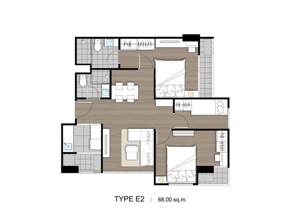 ขนาดพื้นที่ 68.0 ตารางเมตร