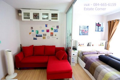 Condo sales Plum Condo Ladprao 101 room size 22.36 sqm 1 bedroom 1 bathroom fully furnished. Ready to move in, sofa bed, wardrobe, electric appliances, air conditioner, refrigerator, water heater, etc., quiet atmosphere. Corner room, 4th floor, G building, facilities low cost is 653 baht per month. Negotiable