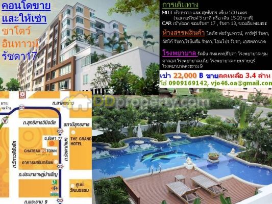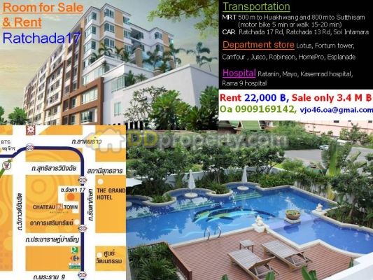 เช่าขาย คอนโดราคาถูก รัชดา 17 624 ตรม ห้องมุม วิวสระว่ายน้ำ พร้อมเฟอร์แล - คอนโด ขาย